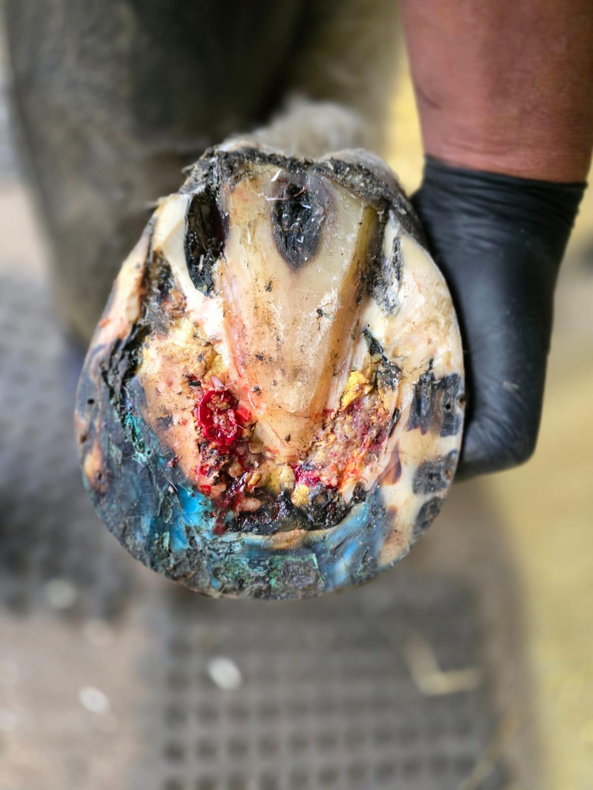 fig 1. severley foundered foot exhibiting gross solear prolapse