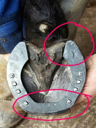 - The hoof is elevated at the heel, causing the hoof to contact the ground earlier at the rear.