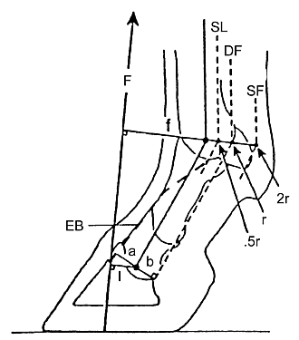 - The hoof lands toe-first or flat, and the GRF acts further cranially, increasing r.