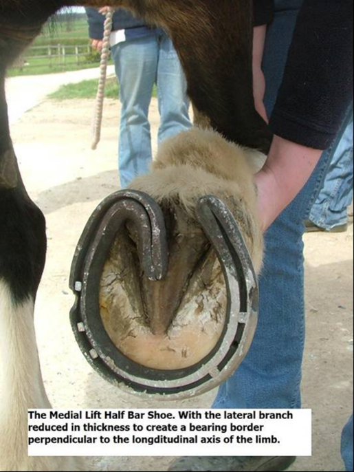 - Use of a wide-web keg shoe modified by grinding and customising branch widths, combined with rocker toe, in an animal with unilateral sidebone.