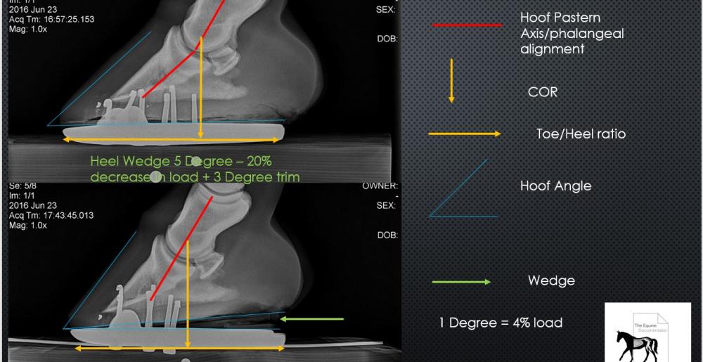 While an increase in tendon-surface angle is typically viewed as beneficial, excessive alteration of PA may transfer load to other tissues or joints (e.g., DIPJ cartilage, impar ligament). Also, because individual horses vary in conformation, tendon health, and workload, the one-size fits all assumption is unwarranted (Holroyd 2013).