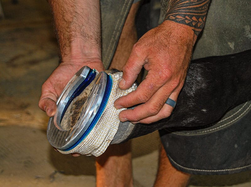 Glue-on technology eliminates the nail entirely, replacing it with an adhesive bond between shoe and hoof capsule. It has opened therapeutic shoeing to horses where nailing is impossible or contraindicated, and it has enabled biomechanical modifications — precise medial or lateral extensions, solar support positioning, therapeutic wedging — that a nail pattern simply cannot deliver to the same degree of accuracy.