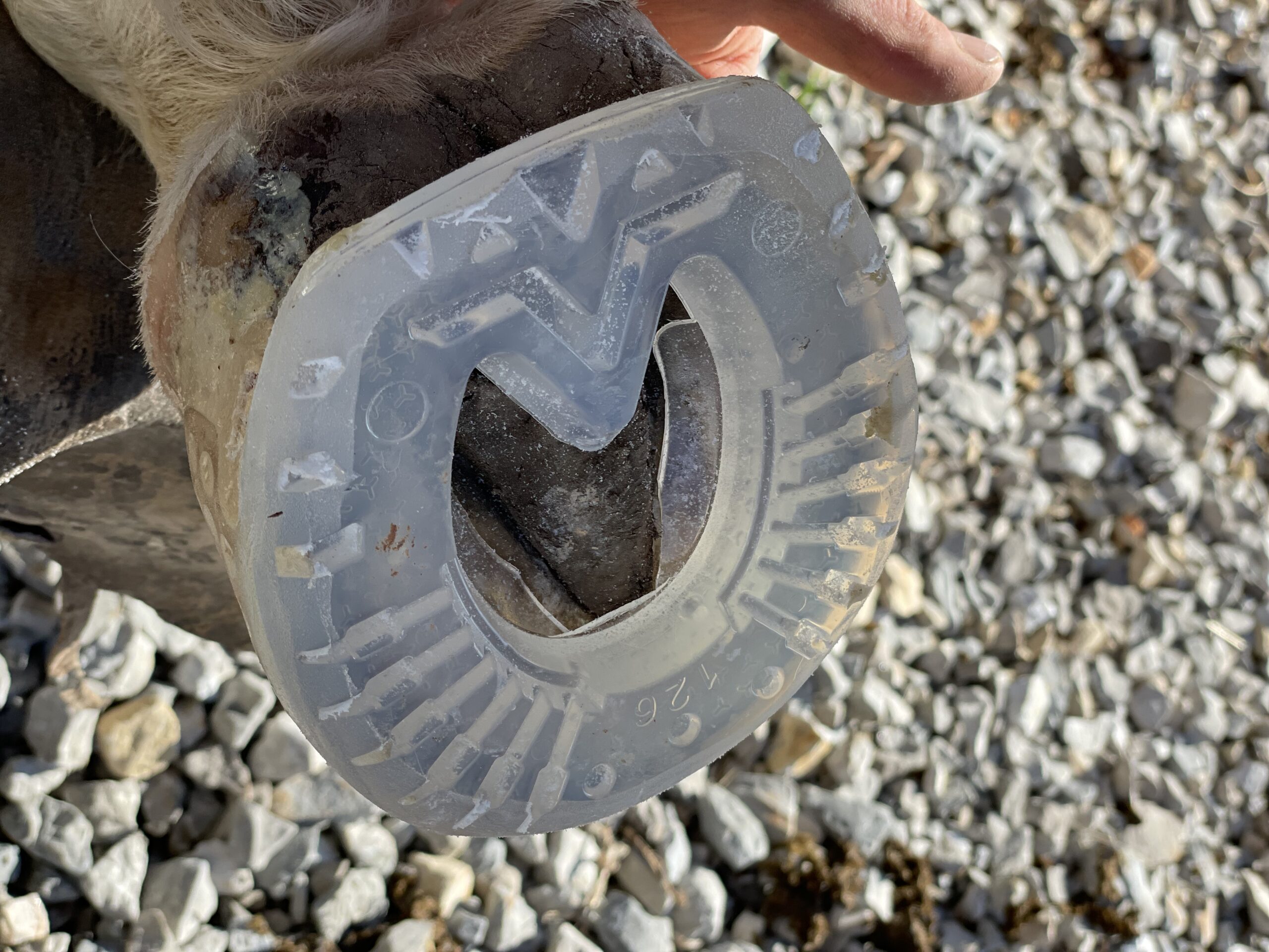 Pure polyurethane shoes — without a steel insert — offer maximum damping and can be shaped to the foot contour. They are glue-on only, wear considerably faster than composite equivalents, and deform under sustained load at elevated temperatures. Their clinical role is as a bridge: they belong in the rehabilitation context, not as a routine long-term shoeing option.